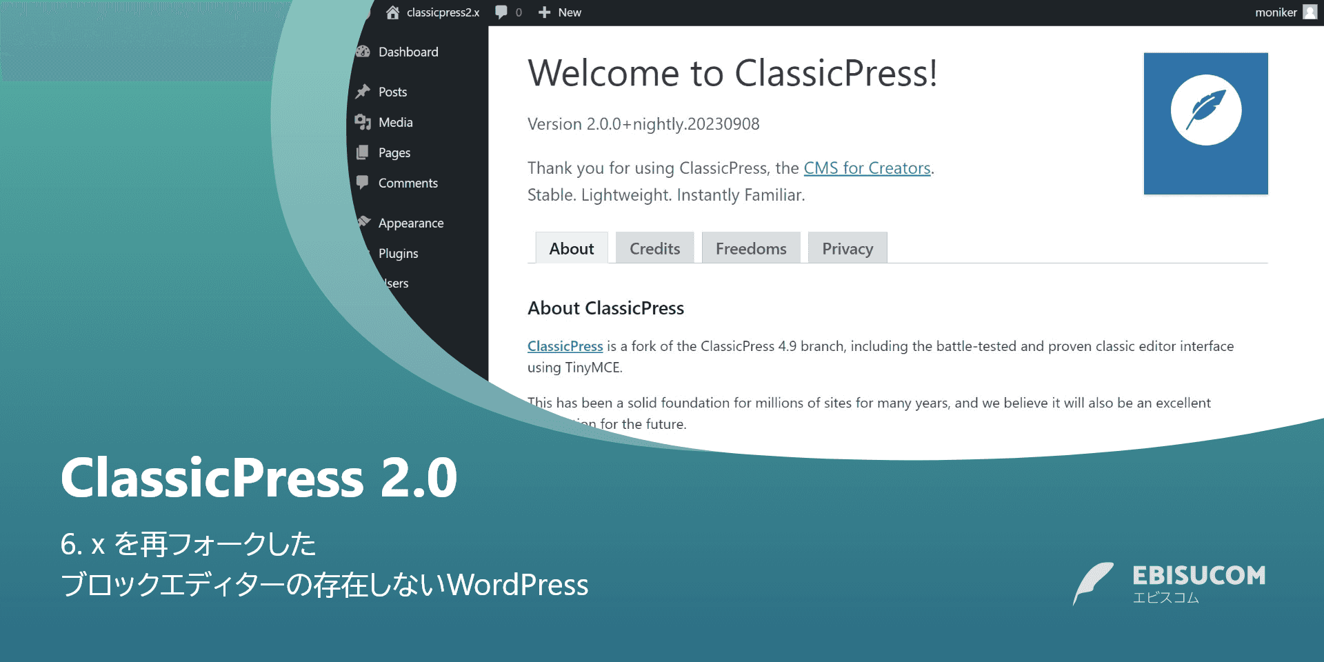 WordPress から fork して、ブロックエディター(Gutenberg)の存在しない WordPress として開発の進んでいる Class…