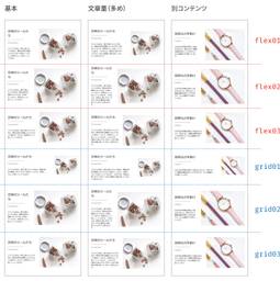こうした形でコードを用意したため、いろいろと条件を変えたときのレスポンシブの変化など、細かいところまで比較できるようになりました。
