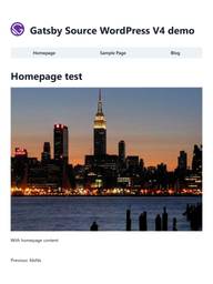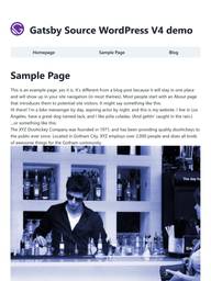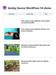 対応したスターターも公開されています。たとえば、こちらの gatsby-source-wordpress V4 (alpha) starter を立ち上げると、サンプルのWordPressサーバーを使って立ち上がってきますので、機能を確認するには非常に便利です。
