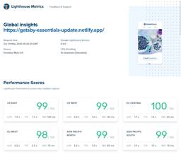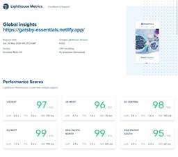 GatsbyJSで作成した『Webサイト高速化のための 静的サイトジェネレーター活用入門』のサンプル(https://gatsby-essentials.netlify.app/)を Lighthouse 6 で測定すると、5.6のときよりも全体的にパフォーマンスのスコアが下がります。