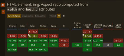CLS対策は省略されているわけではなく、width & height属性を元に、ブラウザを通してAspect ratio(縦横比)が指定されています。そのため、古いブラウザではCLSが発生することになります。