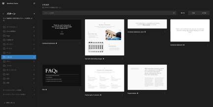 残りは、セクションを構成するパターンです。テキスト、CTA、サービス、ギャラリー、ポートフォリオ、注目、バナーなど、さまざまなカテゴリーごとにセクションパターンが用意されています。