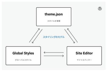 WordPress のデザインシステムは、ノーコードなエディター環境で CSS を扱えるようにするために用意されたスタイリングのモデルです。こちらの記事の「スタイリングのモデルとtheme.json」で紹介したように、theme.json でスタイルを管理することにより、エディターの UI と、グローバルスタイルを機能させるシステムとなっています。